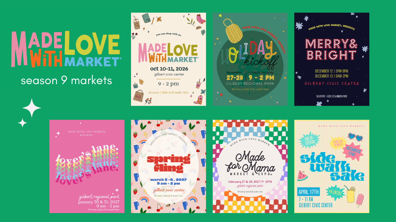 Searching for unique, on trend vendors who are kind and have excellent branding. We are always accepting vendors. Our current season still has a few spots left for the following events: Spring Fling (Feb. 28-March 1, 2026), Made for Mama (March 28-29, 2026), and our Sidewalk Sale April 18, 2026 (vendor clearance event). Our new season, Season 9 opens on Friday, February 6th for approved vendors.